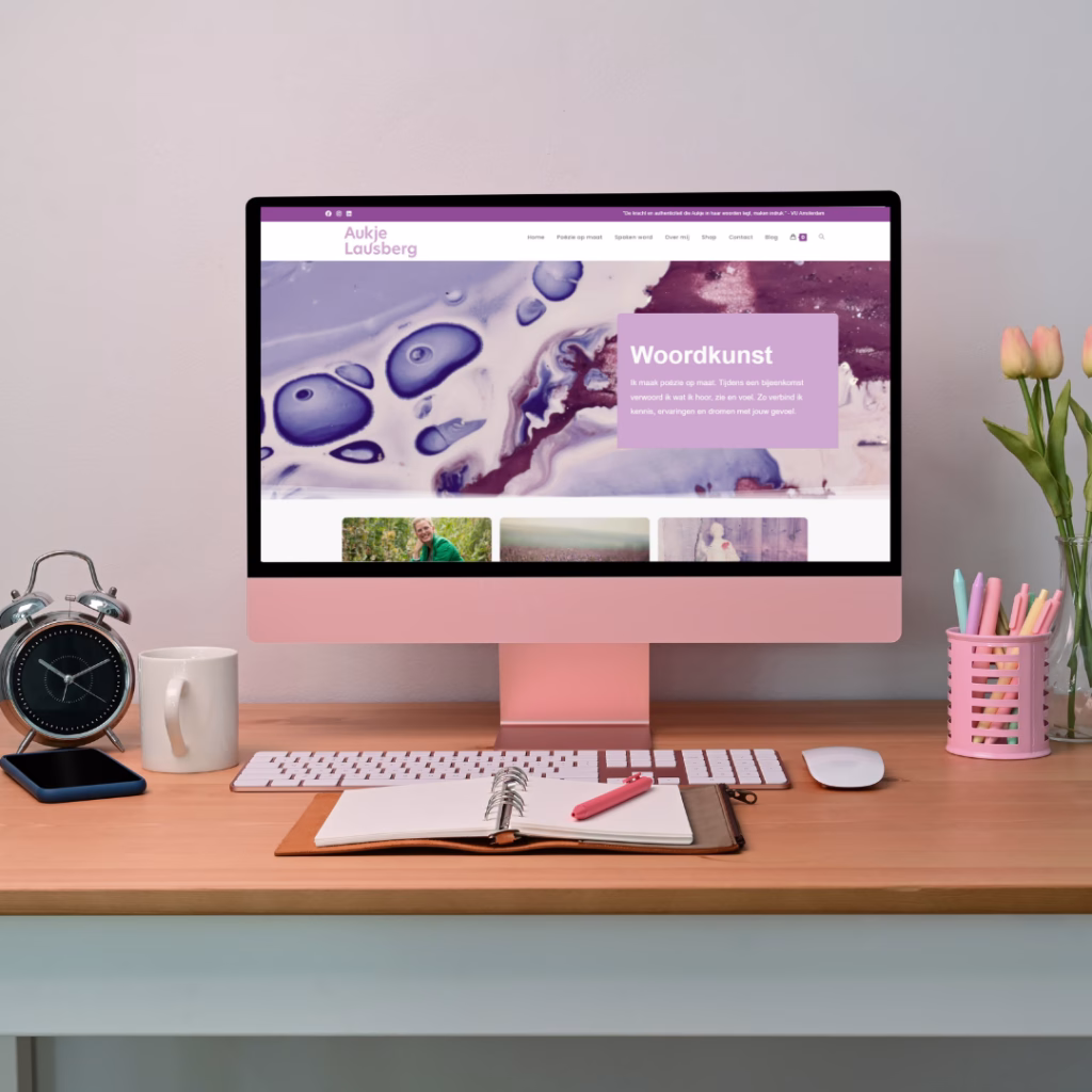 Ze wist dat ze een plek nodig had om haar werk zichtbaar te maken, maar hoe die eruit moest zien, stond nog niet vast. Samen onderzochten we wat haar site moest vertellen: wie ze is, wat ze doet en hoe ze dat doet. Daarnaast moest er ruimte zijn om de website in de toekomst uit te breiden met een webshop voor onder meer kaarten en gedichtenbundels.